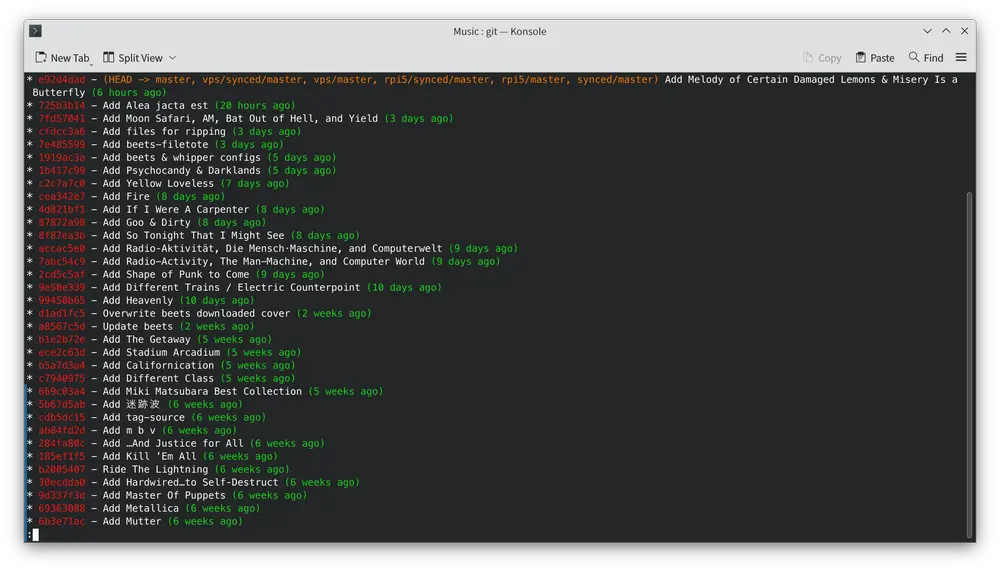 为了方便使用Git管理,我把Beets的数据库也放到~/Music里了。