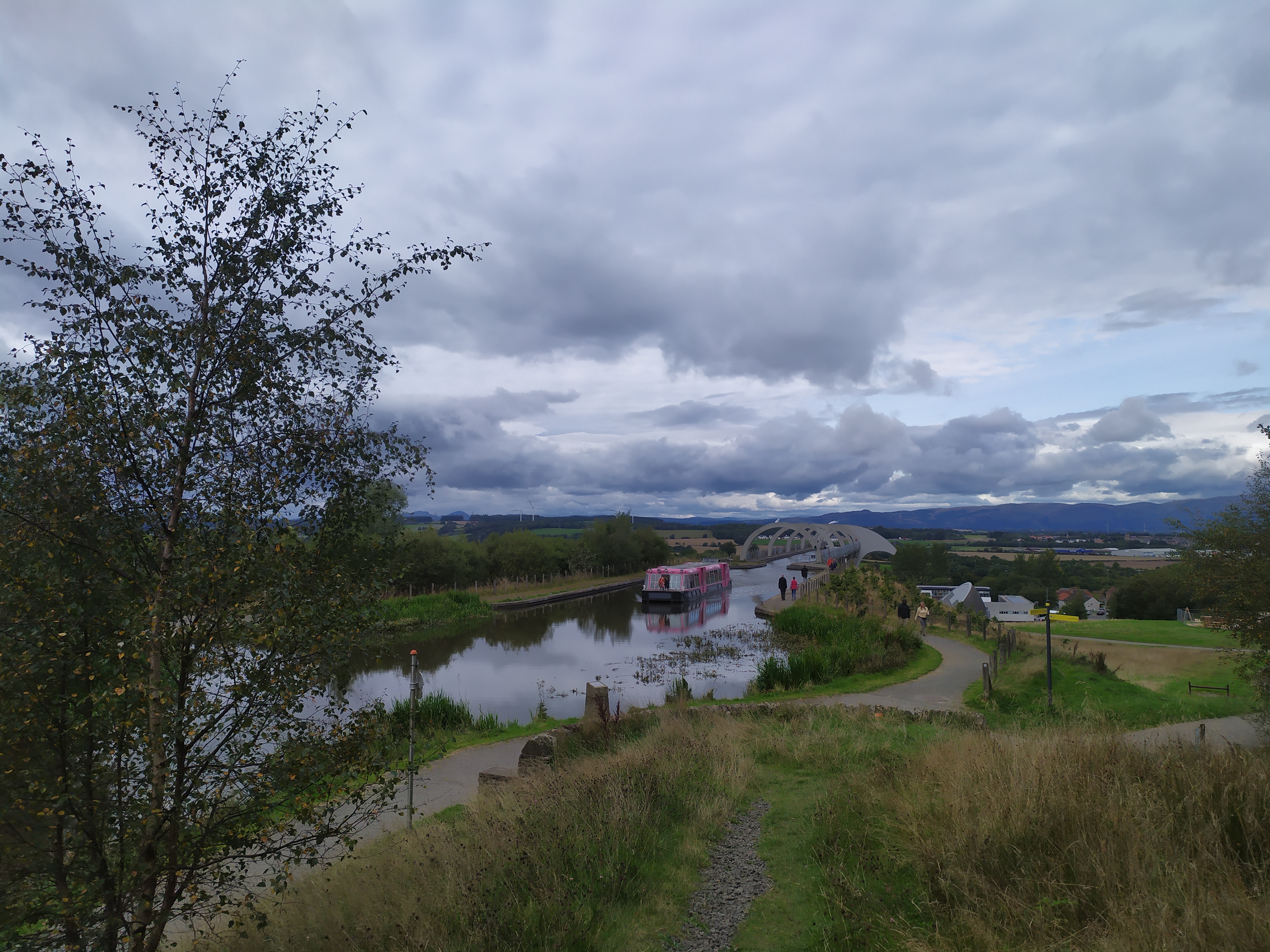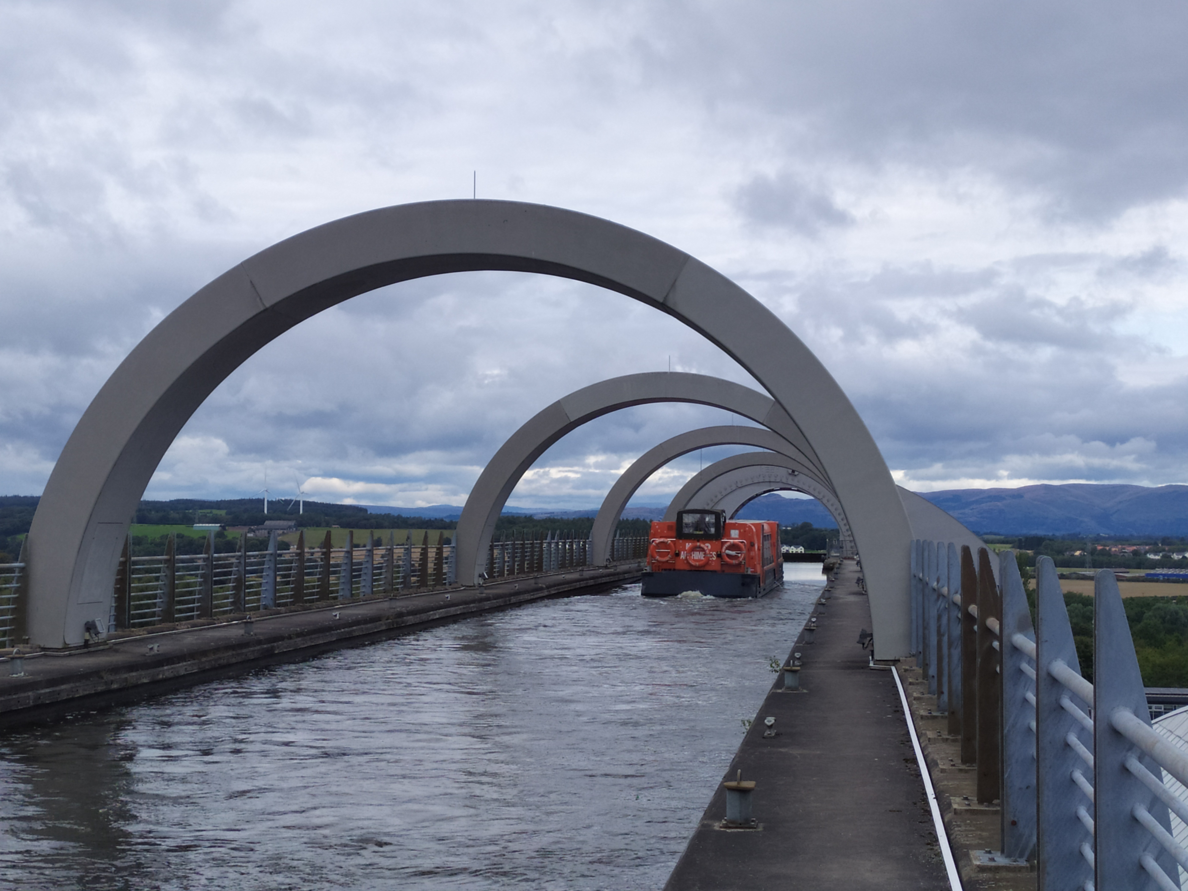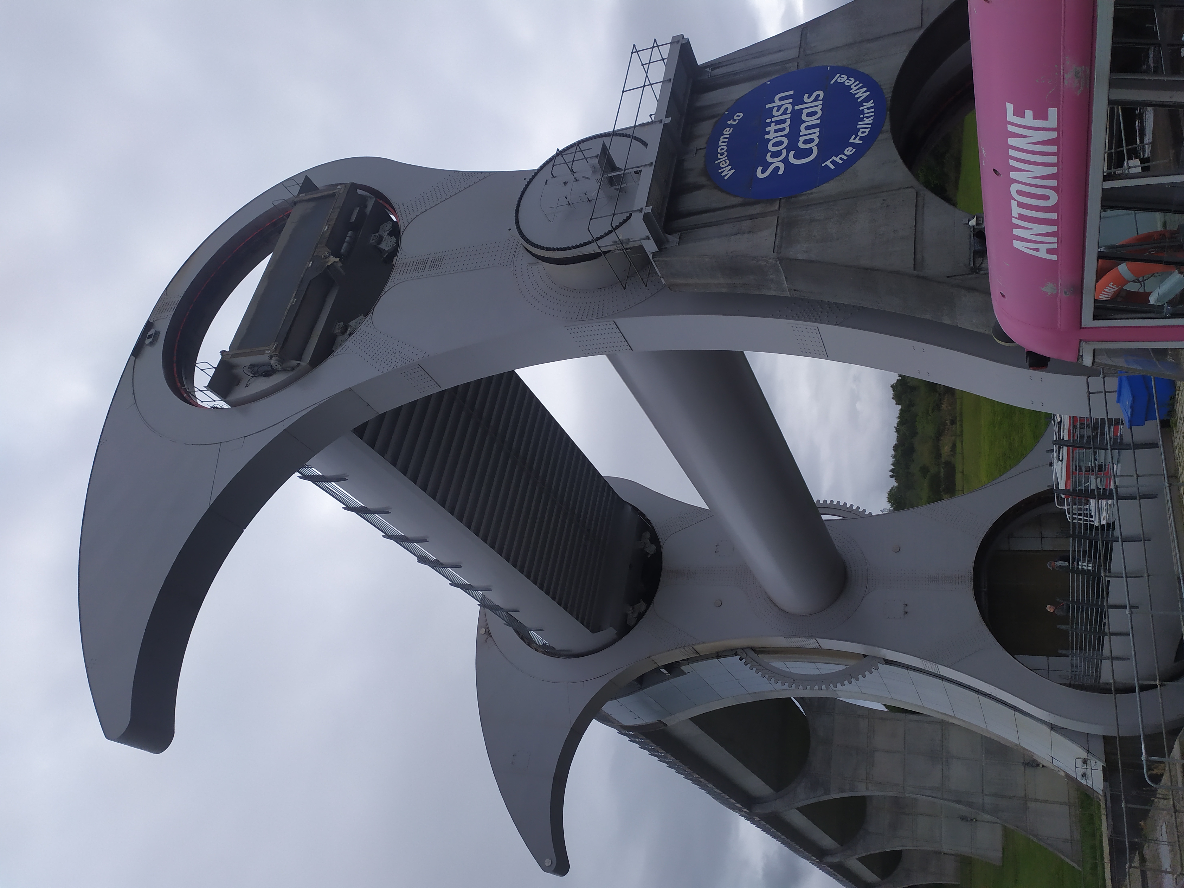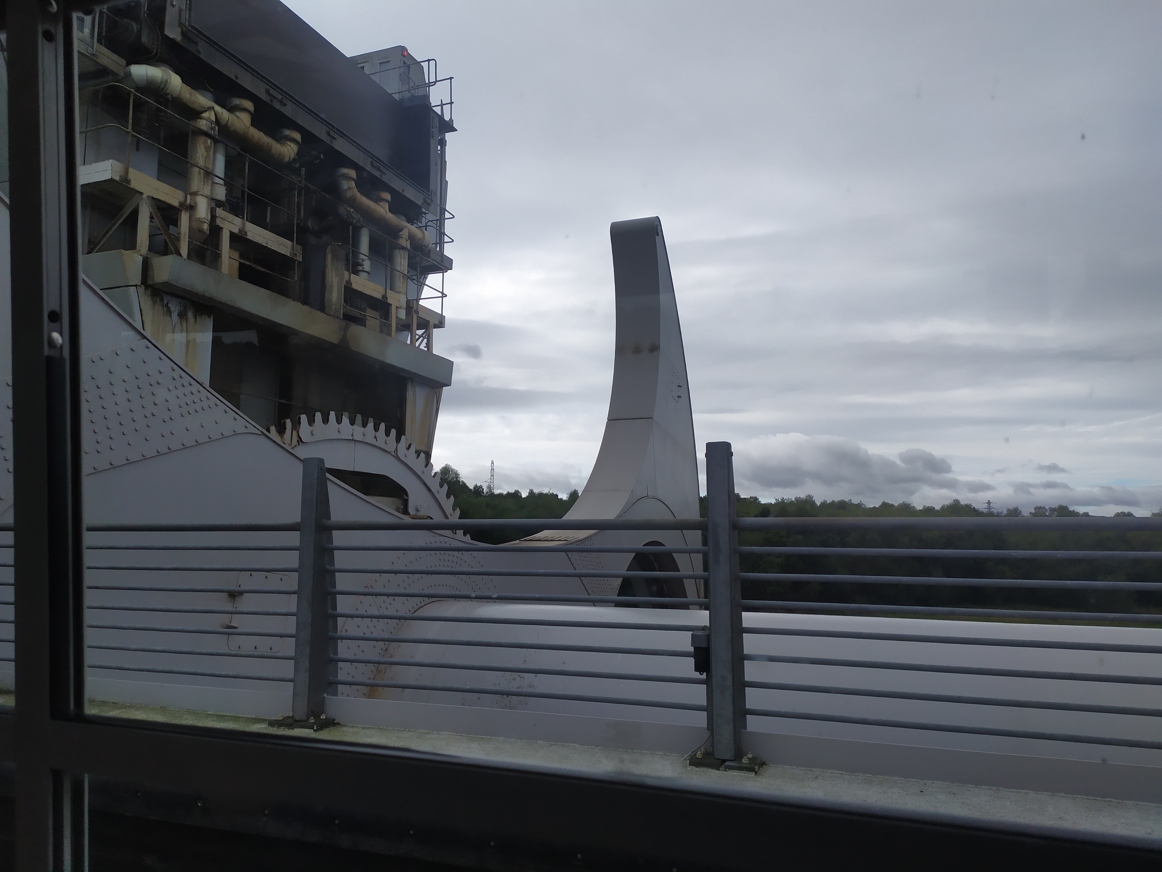 从Camelon下车后走小半个小时就能到Falkirk Wheel。这东西实在巨大,走二十分钟就可以看到了。一路上见到的人一只手可以数过来,我还以为没人去这个景点。到了才发现人很多,而且都是从另一个方向坐大巴过来的。我们到的时候似乎来了个德国老年团,还没上船就能听到船舱里的德语往外涌。