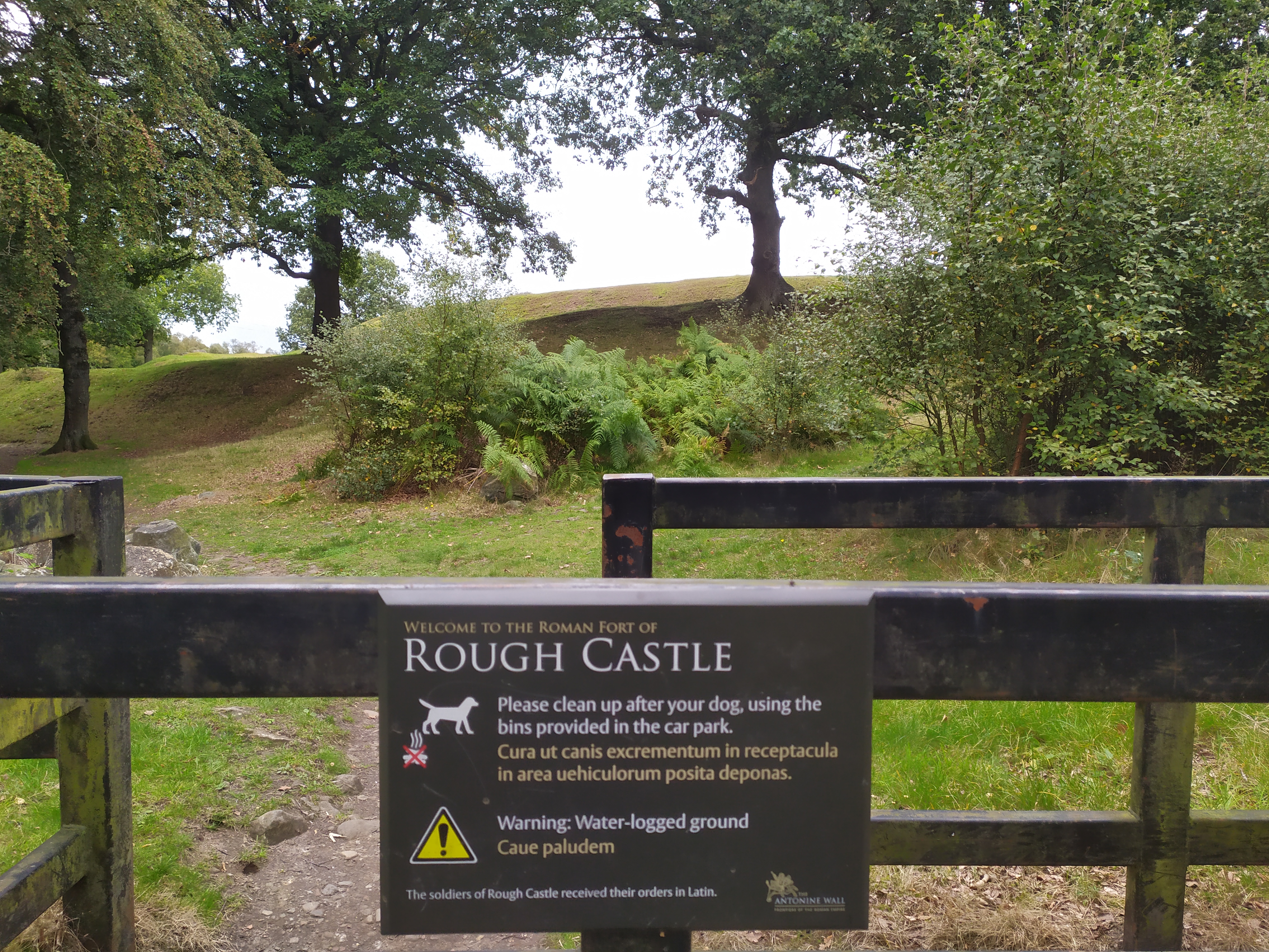 我照这张图是因为那告示牌很有趣:英文警告语下面是拉丁语翻译,最下面的小字写着“Rough Castle的士兵以拉丁语接收命令”——仿佛一千八百年后的今天,仍然有脱离大部队的罗马士兵回到这座要塞遗迹。如果真是这样,想必这士兵是携带着压缩木星制成的炸弹与宇宙怪兽搏斗后回到这里的吧。