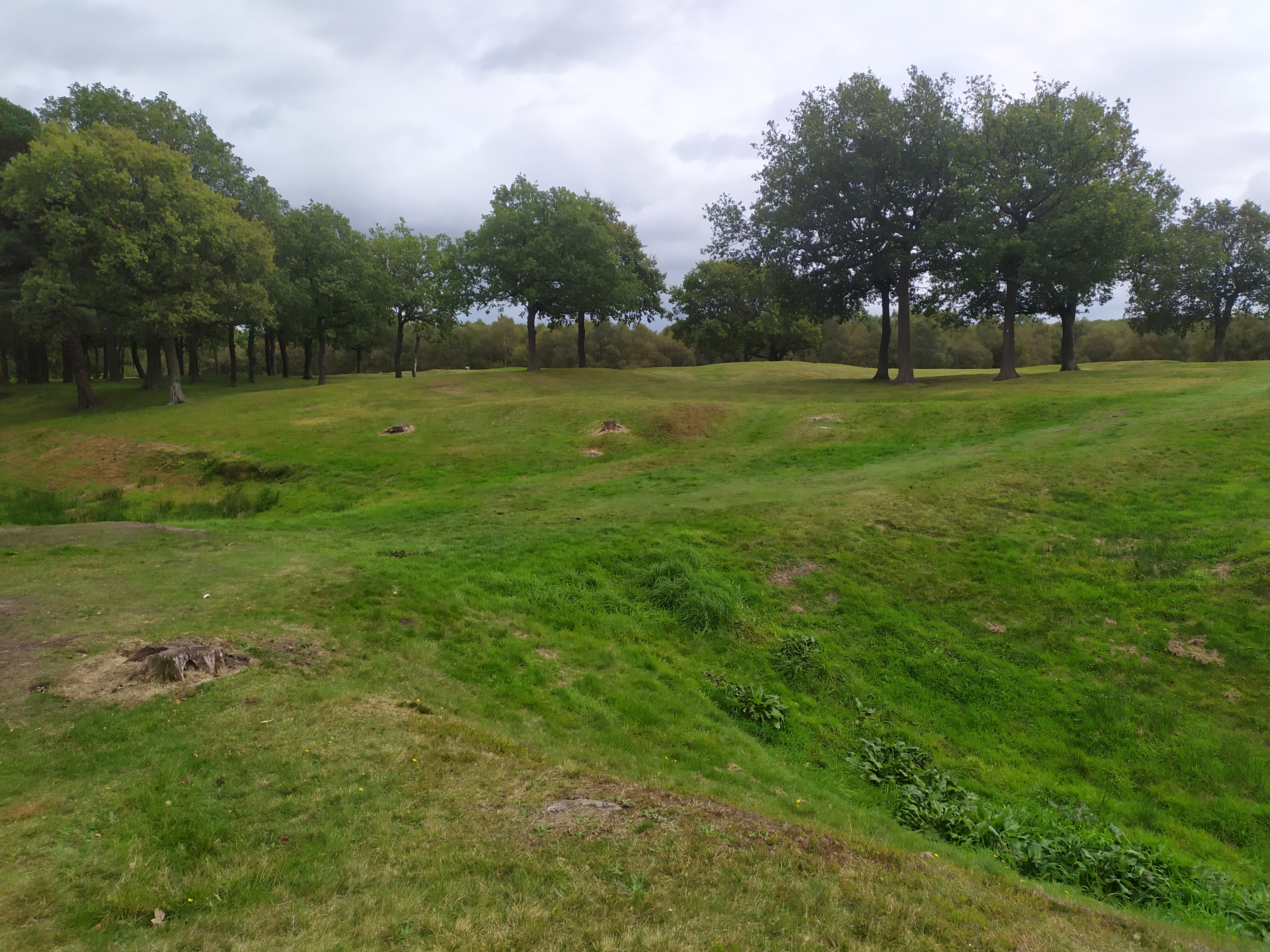 下图可以看到一条小路。小路两边的深坑是“护城河”的两个终点。小路前方,也就是图中右上部分曾是要塞。如果难以想象的话请看下面的假想图。我是站在“YOU ARE HERE”不远拍的——根据假想图,我所照的地方就曾是安东尼长城。