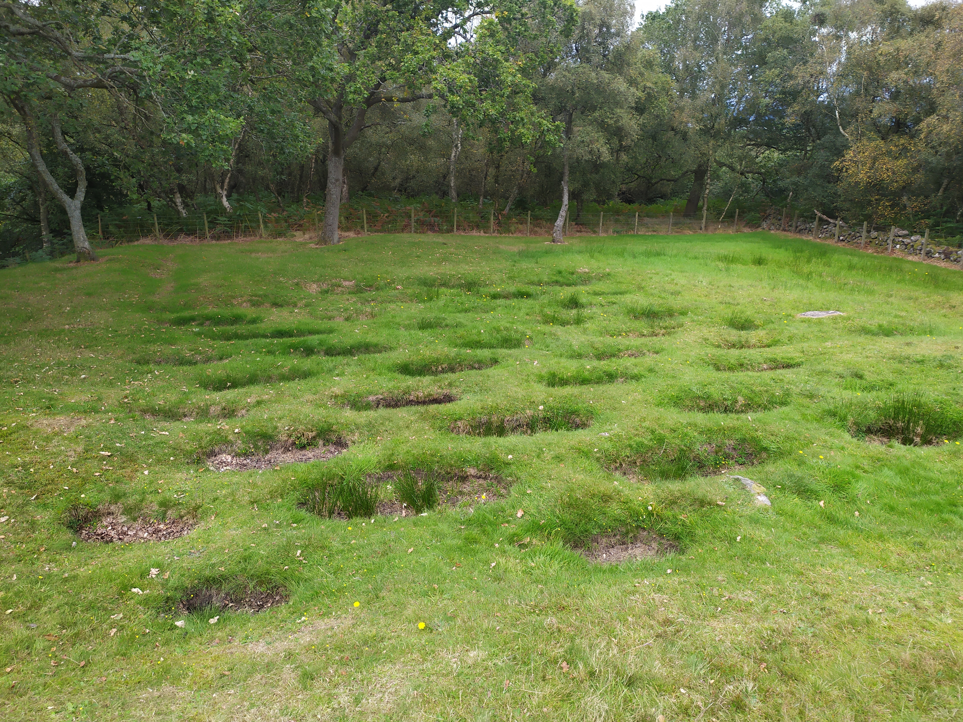 建筑物是基本看不见了,但是还能看到Rampart、Lilia以及长城外的河道。这些对地形做出的变化似乎不太容易被掩埋。Rampart是交替出现的土堆与土坑:随便画几条“平行”的曲线,实线部分高,空白部分低,就是Rampart的俯视图。我没有照最明显的部分,但下图中间还是能依稀看出的。
