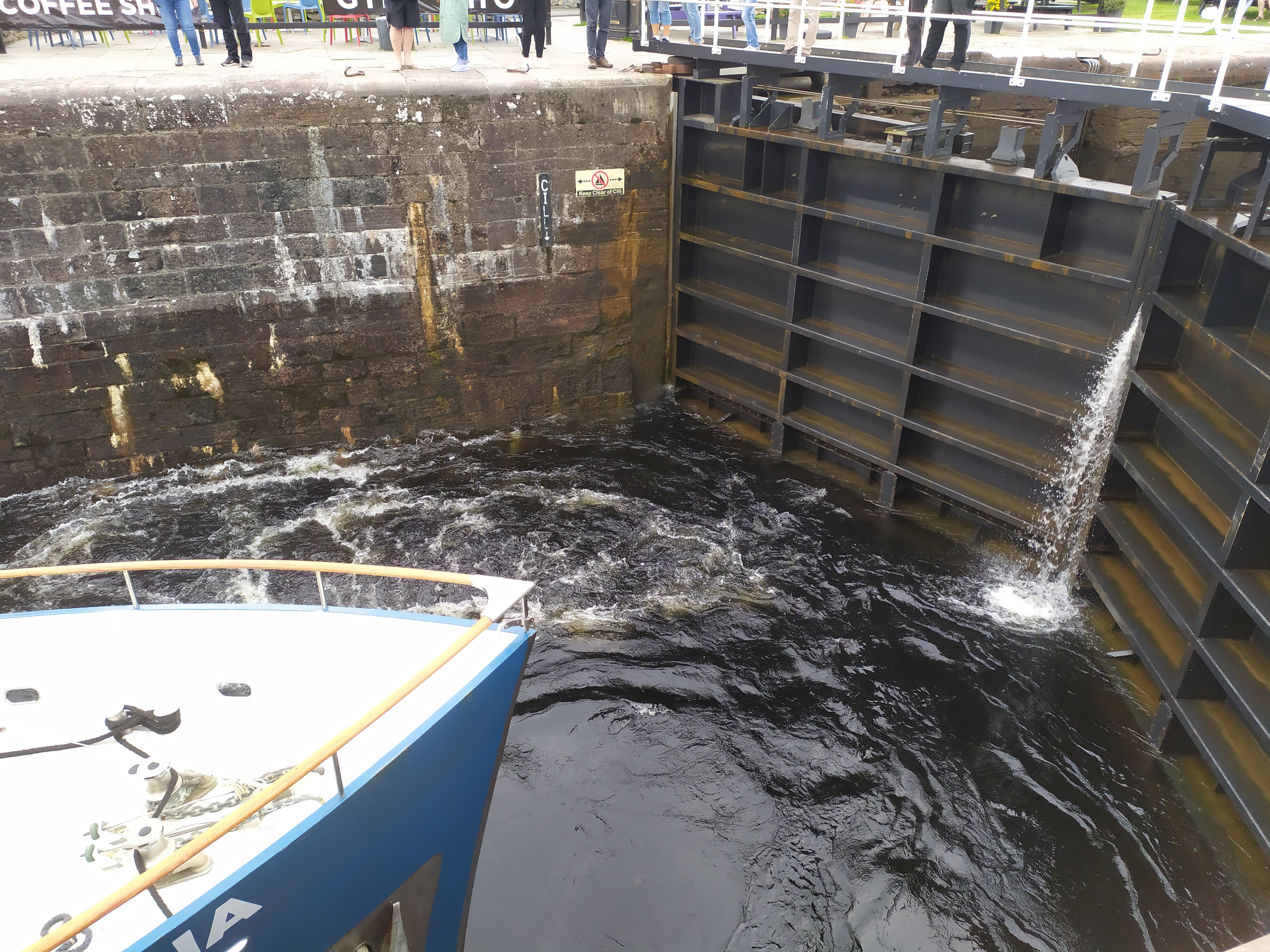 尼斯湖形状是一个很扁的长方形。这里有很多游艇,因为尼斯湖两端的水路可以延伸到大不列颠岛东西两面的海域。下图是从尼斯湖向西南方航行会用到的船闸。船上是法国人,我很羡慕他们从法国开到尼斯湖的时间与金钱。