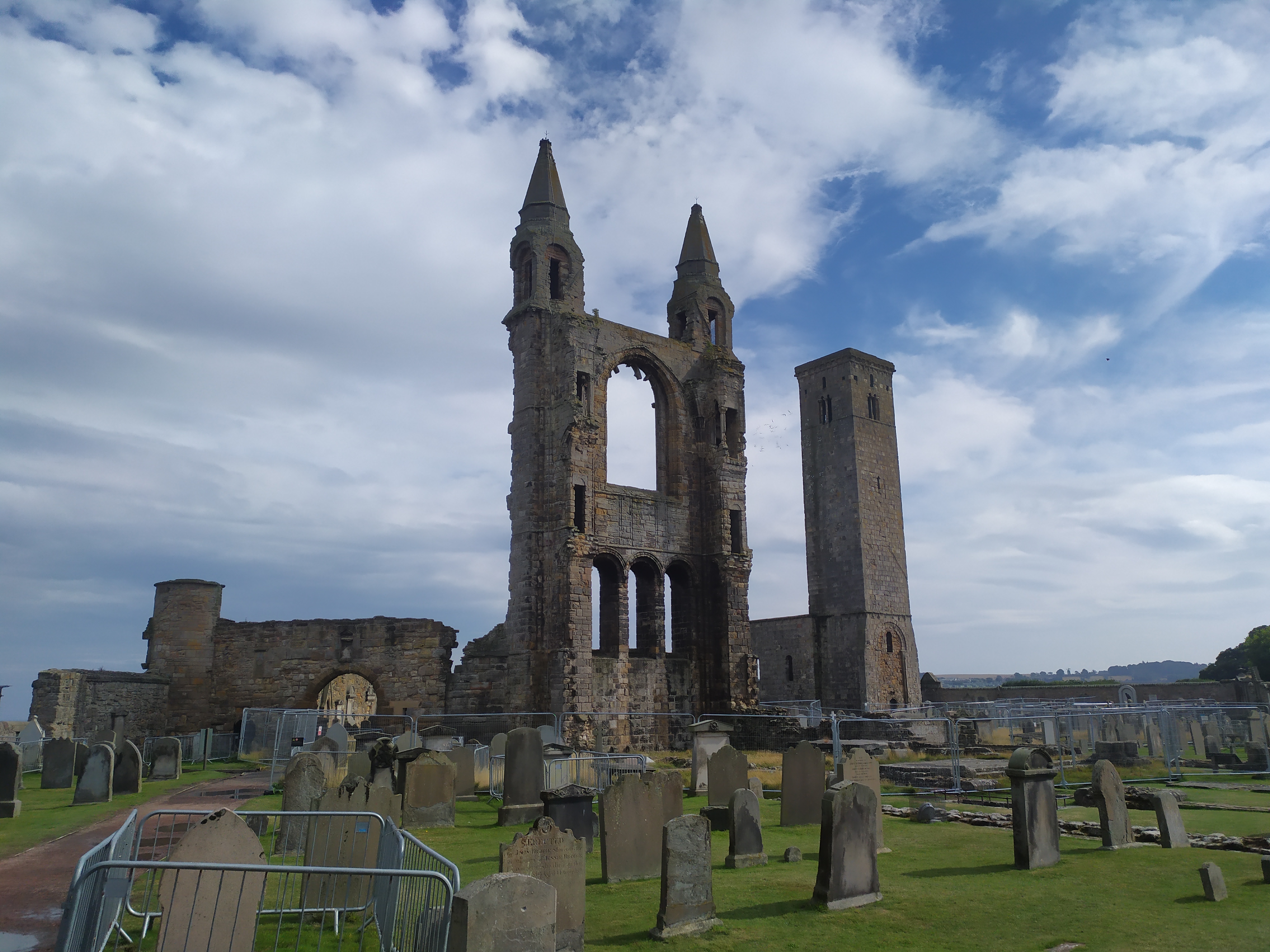 我参观的第一站是圣安德鲁斯大教堂。我十分喜欢这种半毁不毁的建筑。这座教堂曾经是苏格兰最大的基督教教堂,在苏格兰宗教改革中被毁。那场改革很血腥,有个24岁的教师在大学门口被烧死。