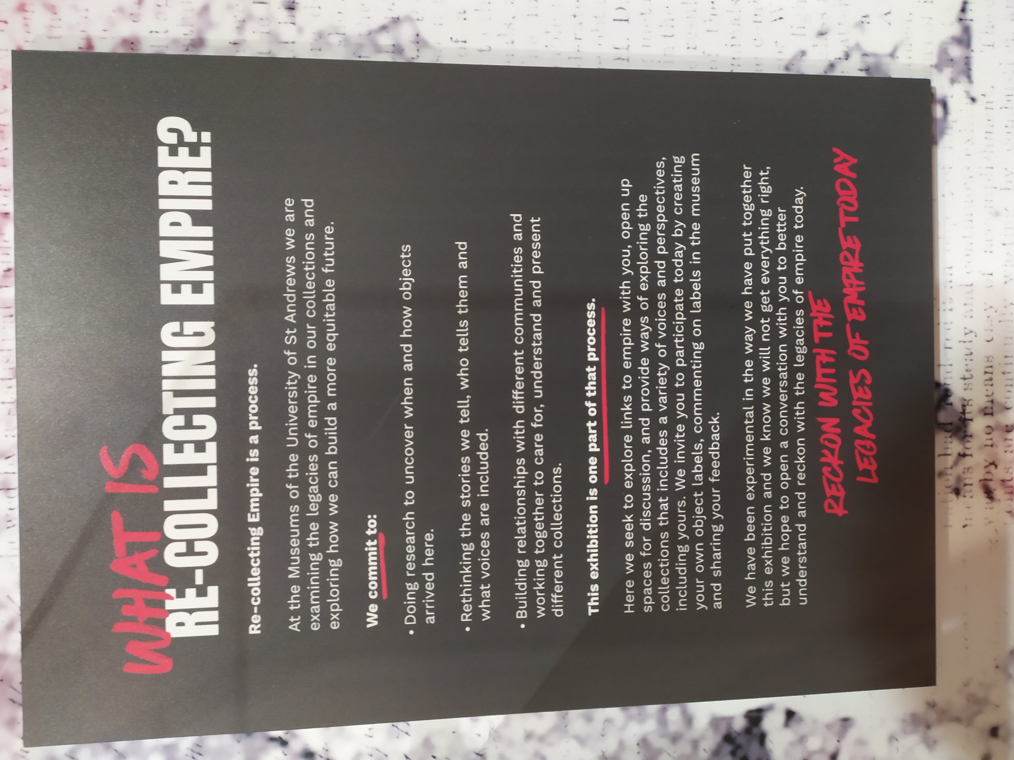 其实这个小博物馆最棒的是当时的临时展:Recollecting Empire。这个展是Recollecting Empire计划的阶段性展示。该计划的目的是调查大学收藏里外国文物是怎么来到这里的、反思他们对文物的介绍等等。